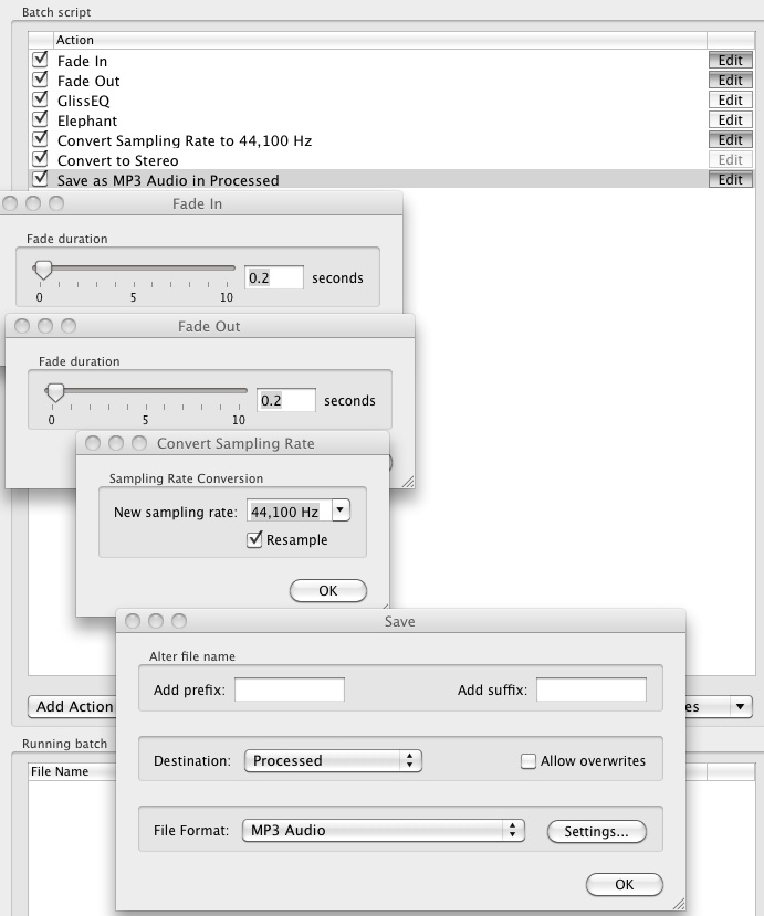 Sinon ça plante toujours en Batch (je joins une capture des quelques process en jeu, si ça peut aider). GlissEQ et Elephant sont deux plugins AudioUnit de Voxengo.