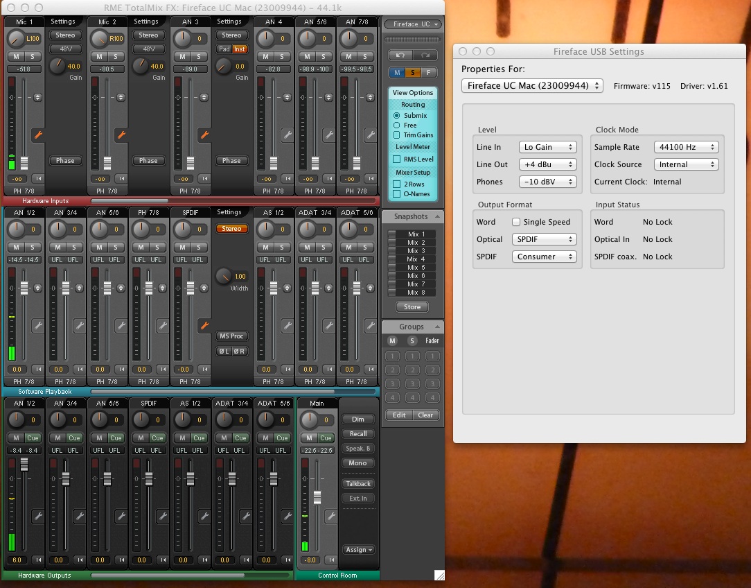 Et la capture d'écran des réglages de la RME FFUC.