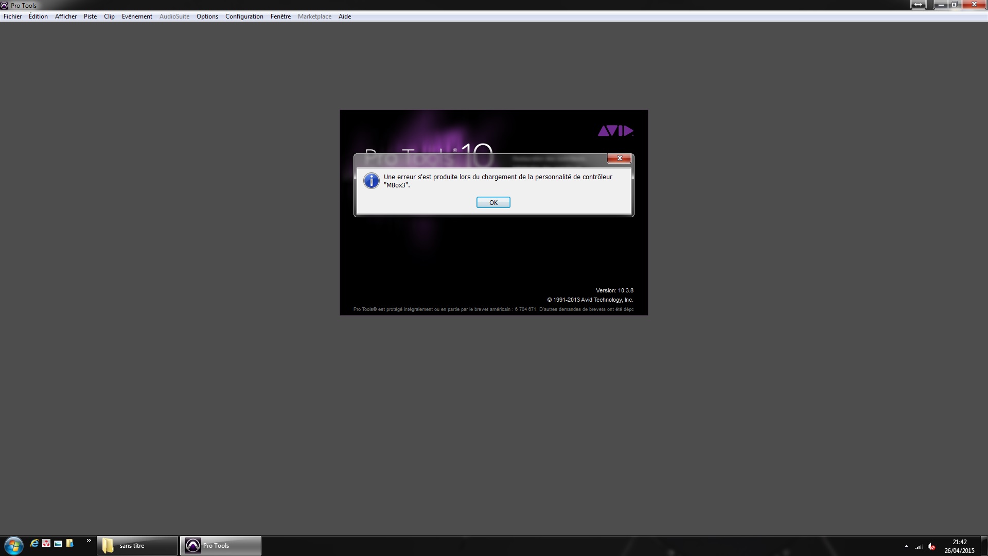 J'ai un message d'erreur qui s'affiche à l'ouverture de Pro Tools 10, (J'ai également Pro Tools 11 d'installé mais lui ne m'affiche pas ce message).