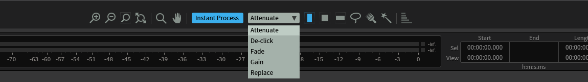 Dans le standalone, tu choisis le process que tu veux faire : declick, attenuate, fade, gain, replace.