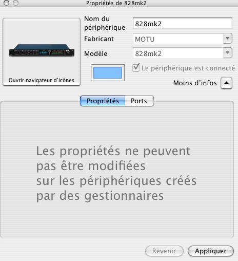 tu dois avoir un probleme de driver midi sur ta motu car voila le type de message que j'obtiens pour ma 828mk2 (j'ai le mem type de message pour mon interface midi smpu64)