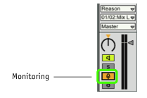 Apres avoir selectionne une piste audio ds Live, et Reason en input de cette piste, assure toi d'avoir le monitoring active: