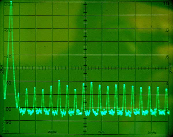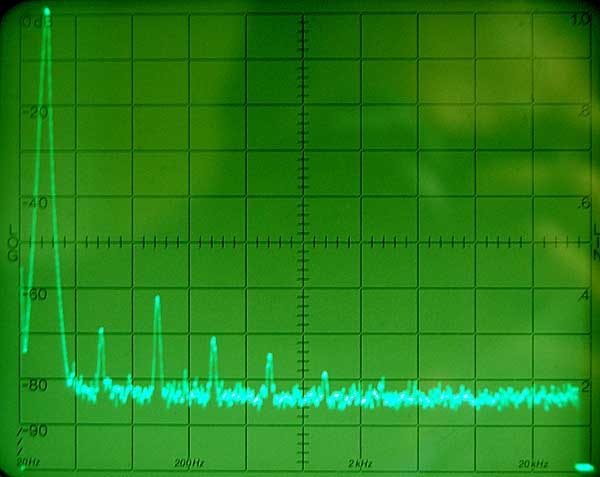 L'échelle horizontale est linéaire, 2 KHz par division contrairement à l'échelle imprimée sur l'écran qui est logarithmique.