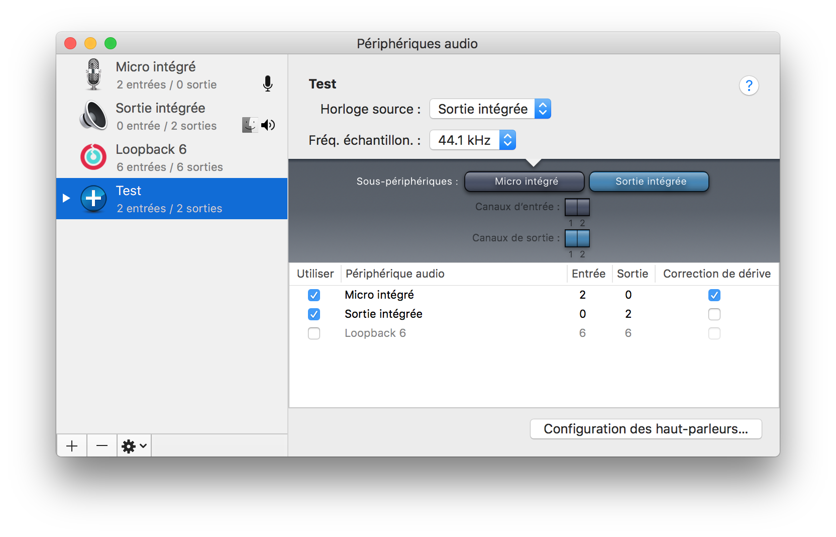 Bonjour. Avec un Mac 10.9.5 et une configuration audio en périphérique agrégé pour 2 cartes son, je n’arrive pas à visualiser cet agrégé dans les “préférences“, “Devices, “input“.