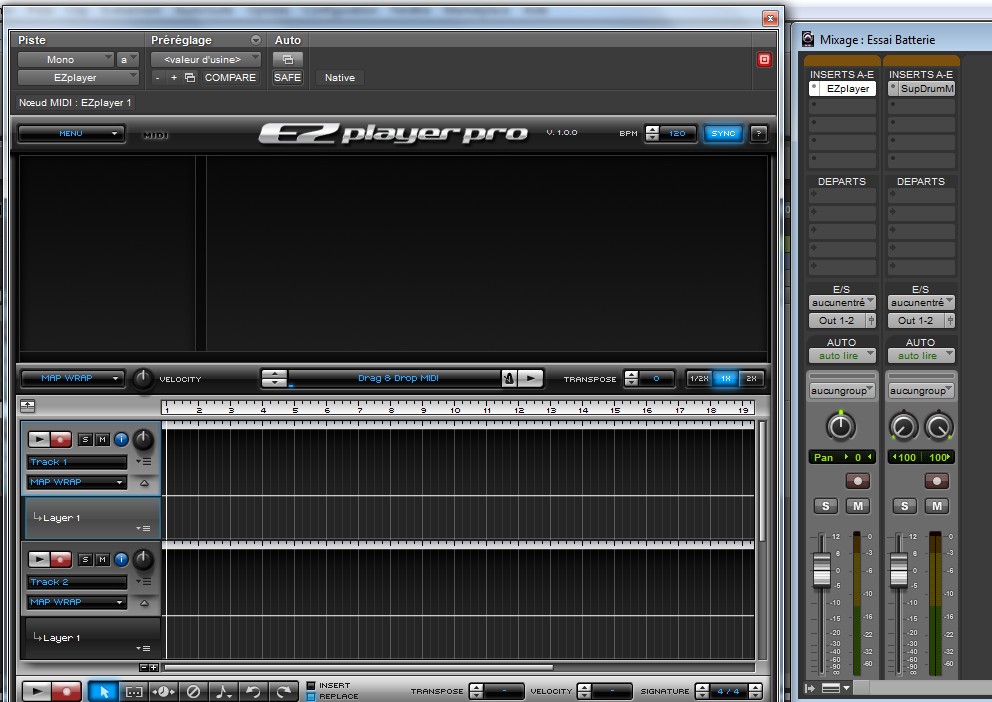 J'ai pourtant bien mis EZplayer sur une piste instrument Mono et SD2 sur une piste instrument stereo comme il est recommandé mais cela ne résoud pas mon problème.