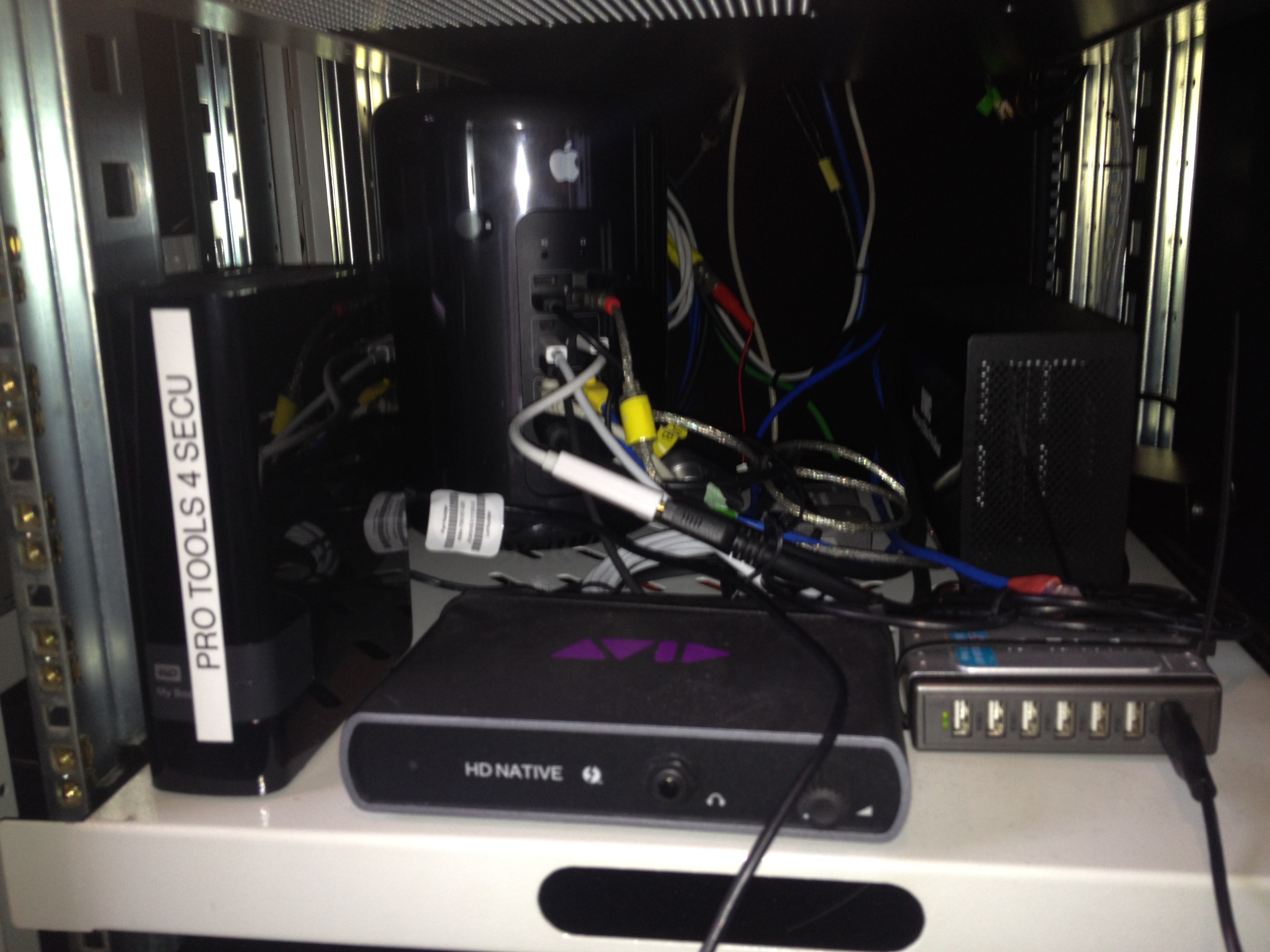 Quand j'ai vu Dark Vador sortir, je me suis jeté sur Le Bon Coin et j'ai acheté un MacPro 2010 8-core SSD. Il a une Digi002 aux fesses via un adaptateur 800-400 à 2 balles, plus une liaison TOSLink pour l'audio interne. J'en ai soupé de l'intégré avec les iMac, je reste sur du modulaire. C'est gros, je m'en fous, j'ai de la place. De l'aveu-même d'un revendeur Apple, cette machine ne se vend pas.