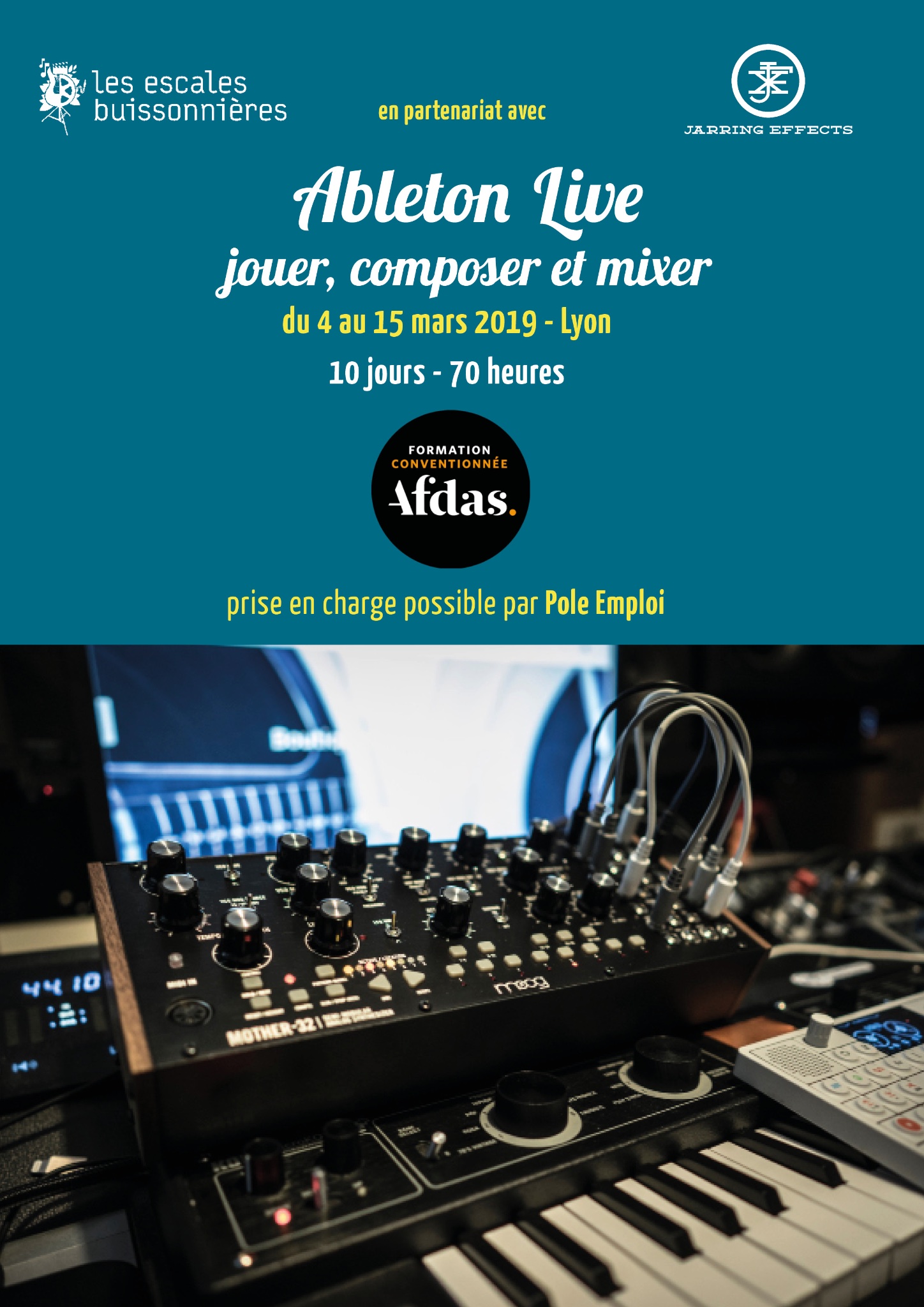 Les Escales Buissonnières, organisme de formation pour professionnels du cinéma , de l'audiovisuel, du spectacle vivant et de la musique, organisent en partenariat avec le label indépendant Jarring Effects, au sein d’EM.I.L (European Music Industry Lectures, premier Ableton Certied Trining Center en Auvergne-Rhône-Alpes), la formation conventionnée en accès collectif AFDAS :
