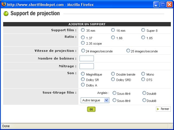 Ceci dit, après, pour le support de projection, il n'y a de case à cocher que pour 35mm, 16mm ou Super 8 ?