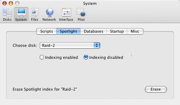 Sinon, tu peux effectivement le désactiver pour les disques de ton choix (donc pas de recherche Spotlight dans les unités, ce qui n'est pas forcément génant ;) ), perso j'utilise TinkerTool pour ça (mais Onyx ou Cocktail doivent le faire aussi).