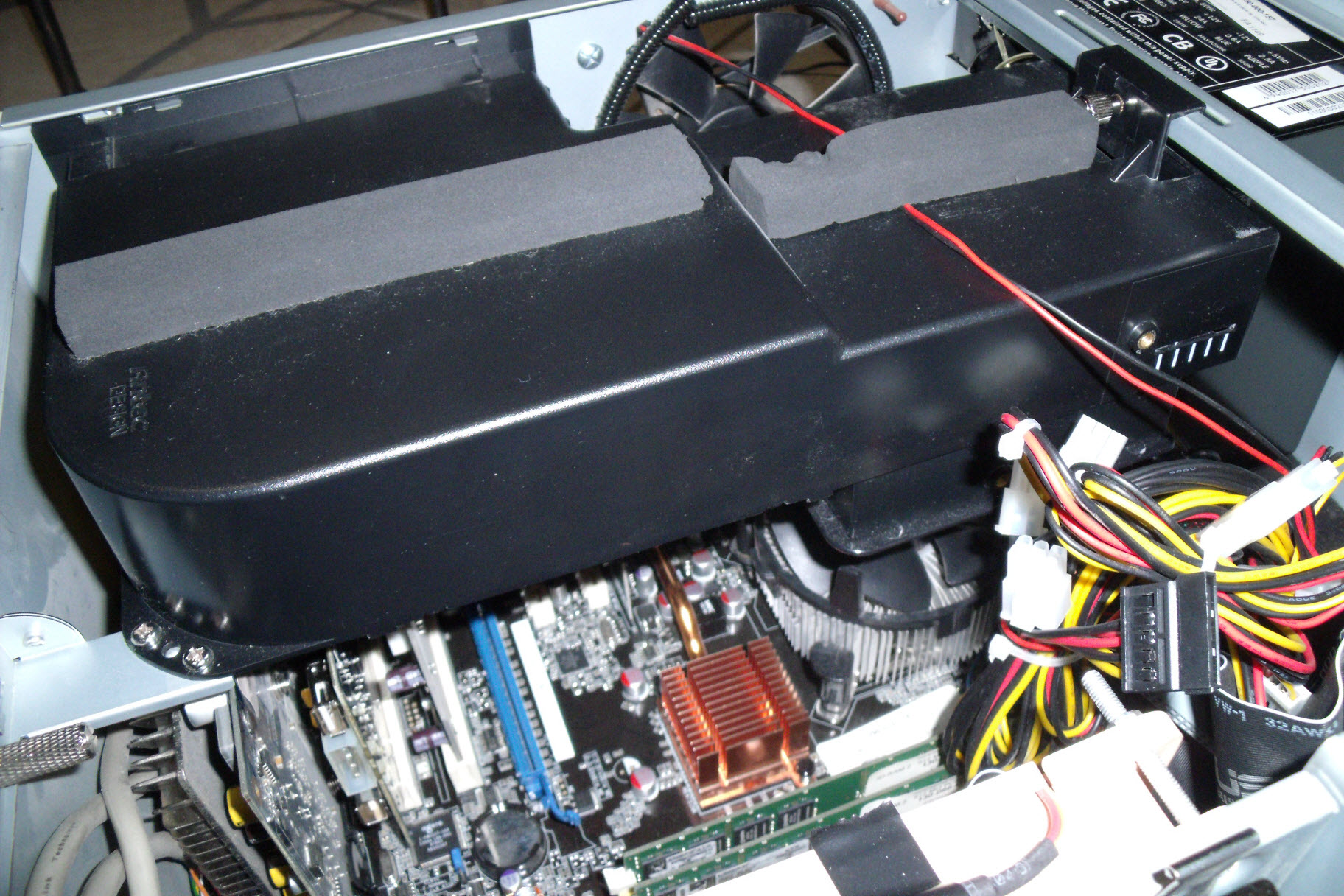 pose d'un ventilo low noise / low speed en arrière du rack des disques durs, là ou se fait l'entrée d'air globale du coffret,